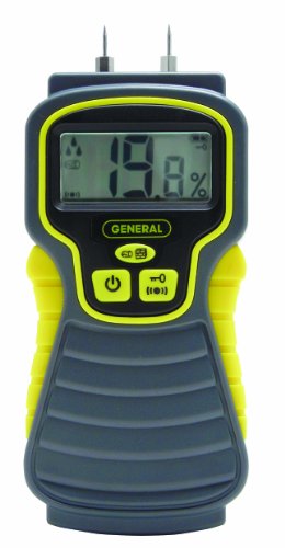 Product Descriptionp/pGenerals ultra-sensitive Digital Moisture Meter easily detects hidden leaks in wood, concrete, plaster and carpet. Providing accurate moisture level readings make this moisture meter great for new home inspections, locating roof leaks or even selecting dry lumber at the yard. Ideal to use in woodworking, building construction, agriculture restoration and floor-laying. Used to check wood, drywall and concrete before painting, sealing or treating and locate and identify water leaks in roofs, floors and walls. Features LED display, wide measuring range, strong stainless steel pins, audible alarms and battery status indication. Display will show the moisture content in Percent Moisture Content directly. Ergonomically designed and CE approved.