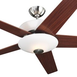 Monte Carlo Fan 5GMR52BSD Brushed Steel Ceiling Fan Dimensions: Height: 18-1/4" Width: 52''. Number of Bulbs: 6. Maximum Wattage Per Bulb: 50W. Bulb Base: Halogen. Number Of Blades: 5. Blade Pitch: 13?. Remote Control Sold Separately Light Kit Included Light Kit Contains (2) 50W, Halogen Downlights And (4) 25W, Candelabra Uplights. Voltage: 120V. Glass: Scavo. Bulbs: Halogen Bulbs Included. How Can Ceiling Fan Save Me Money?. Click Here