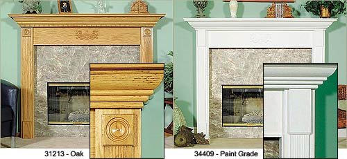 Adjust the look and feel of these mantels to suit any room! Designed to fit from a 32" to 42" firebox, you can add your favorite facing material and the option of dentil molding. br brAdjustable mantels come with 6' wide shelf; side surrounds; adjustable breastplate in either 44"-48" width or 50"-54" width opening; pilasters with blocks; rosette and plinth style ornaments; and dentil molding. Standard opening height dimension is 42" with 3" height adjustment. Available in unfinished Oak and Paint Grade (Poplar).